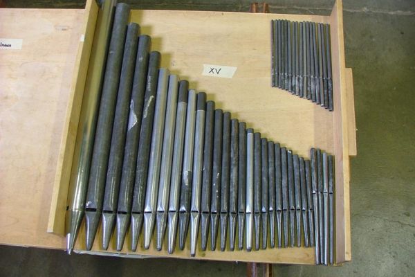 – le anime in materiale piuttosto tenero e di spessore molto inferiore alla media degli organi italiani; taglio frontale delle stesse con inclinazione quasi invisibile.