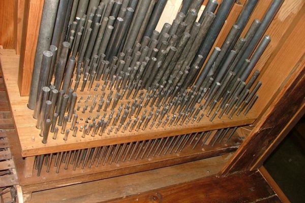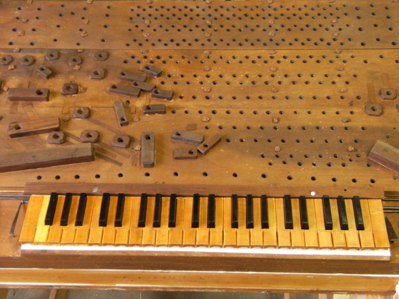 Canne in metallo ricostruite: Do 1 – Re 2 – Fa 4 – Do 9 – Sol# 17 – La # 19 Si 20 – Fa# 27 – La 30 – Do# 34 – Re# 36 – Sol 40