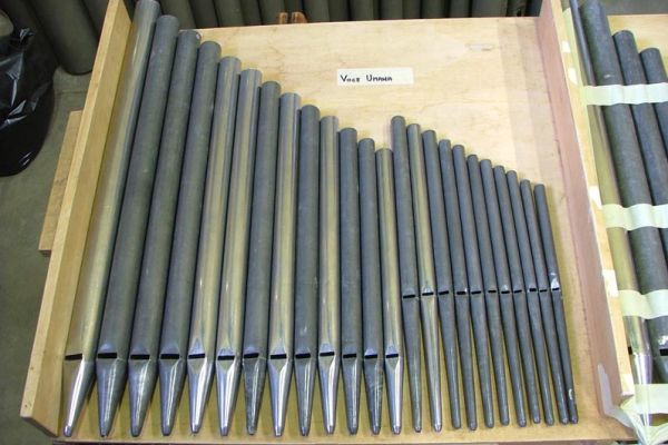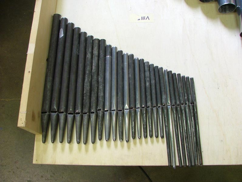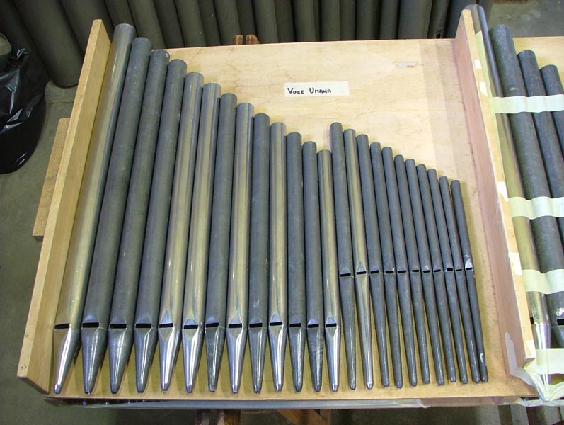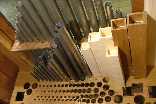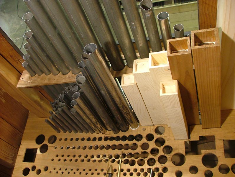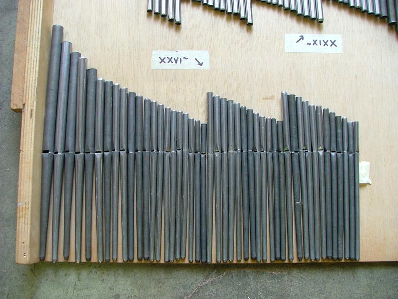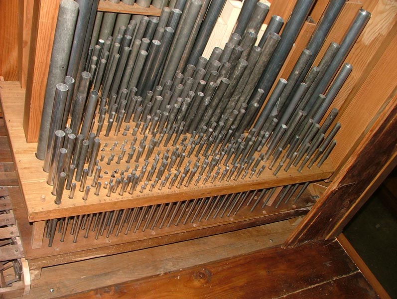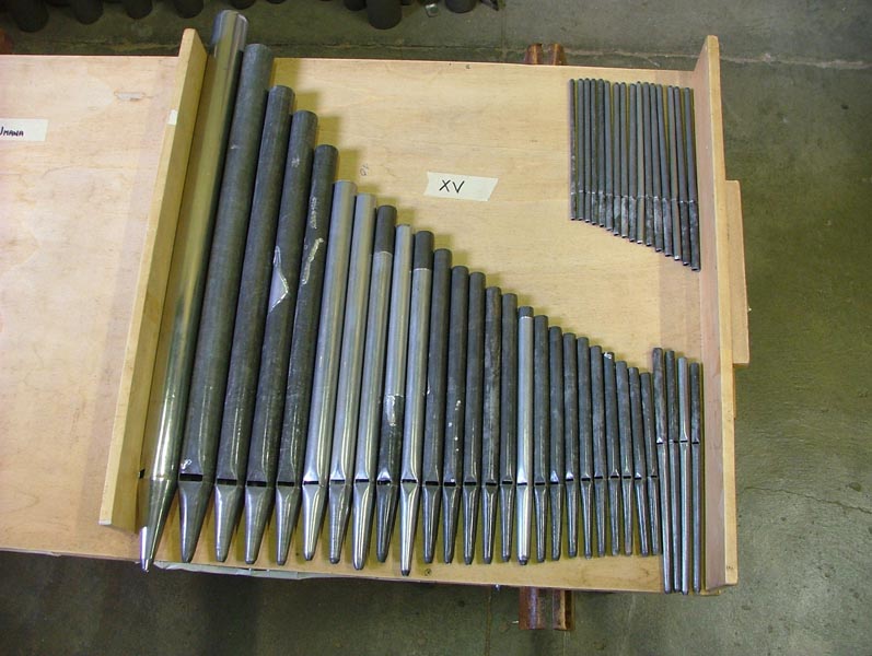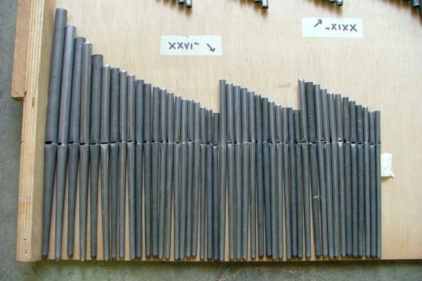 – Le restanti (La#3 a Do5) suonano all’interno sul somiere e sono in piombo.