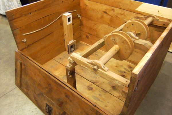 Manticeria: Sono presenti due mantici a cuneo ubicati all’interno della cassa dell’organo, provvisti di meccanismo a carrucola con corda.