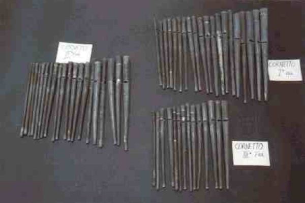 Al momento dello smontaggio quasi tutte le anime avevano il profilo ammaccato dal pesante passaggio di un ferro servito per la cancellazione dei denti e per allargare la luce. Nel restauro il profilo dell’anima è stato riportato, per quanto possibile, alla forma originale.