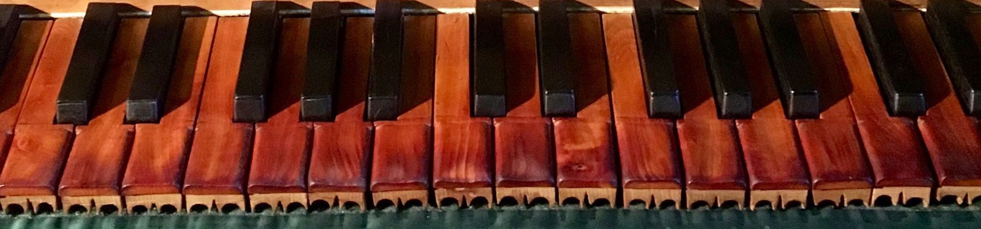 Tastiera a finestra di 47 tasti (Do1-Do5) con la prima ottava scavezza e 2 tasti accessori agli estremi; tasti diatonici di bosso, cromatici ed accessori d’ebano. Divisione Bassi/Soprani: Mi3/Fa3.