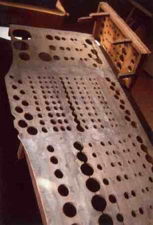 Ciascuna coperta all’origine era fissata sul somiere da chiodi forgiati, sostituiti in seguito da viti di ferro introdotte tra due coperte contigue sui cui bordi fu realizzato uno scasso per alloggiare le viti stesse. In tal modo una fila di viti fermava due coperte vicine.