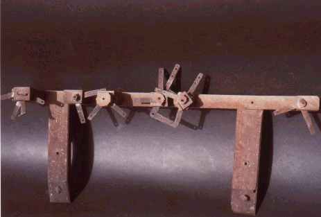 Da qui il movimento, con 1’intermezzo di altri tiranti, è rinviato a una serie di squadrette sotto i due banconi dei Contrabbassi e da queste ai catenacci.